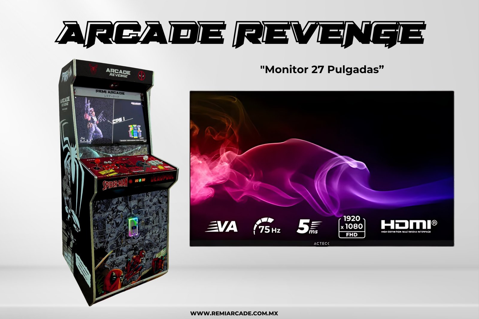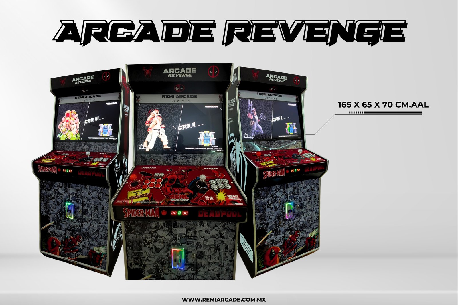 - Diseño “Revenge” Exclusivo: La máquina luce un arte único y electrizante inspirado en la temática “Revenge”. Con vinilos laminados de alta resistencia y una construcción robusta en madera MDF, esta arcade está hecha para durar y para ser la envidia de todos tus amigos.