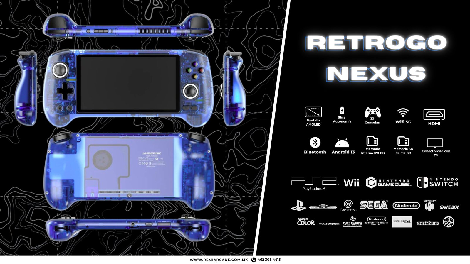 Disfruta de la mejor experiencia de juego retro y Android con la RetroGo Nexus(Ambernic RG556), es una consola portátil que combina hardware de alto rendimiento con una ergonomía superior. Con su potente procesador Unisoc T820 y 8GB de RAM, emula fluidamente una vasta biblioteca de consolas, incluyendo PS2 y PSP, con el sistema operativo Android 13.